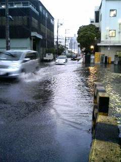 夕方の集中豪雨は特に凄いんですよ・・・職場の玄関前から駅までの直線100メートルくらいが水浸し・・・夕方はね満潮時と重なるらしく台風時期だったりすると膝くらいまで水が流れてくるとか・・・(笑)