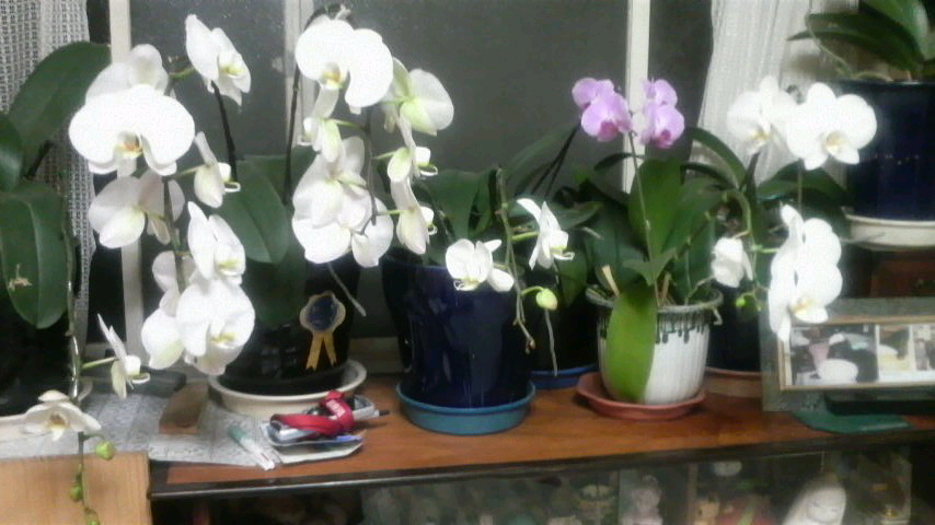 私の母親が大切に育てている胡蝶蘭が満開でした。実家にはホントにたくさんの花々が咲いてるんです。家に帰ると…すっごく落ち着くの